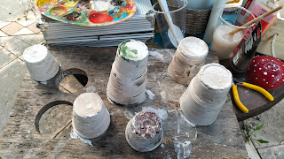 niente paura, ho realizzato dei mini funghi, l'amanita muscaria in miniatura per piccoli spazi o per chi non vuole sporcarsi troppo.